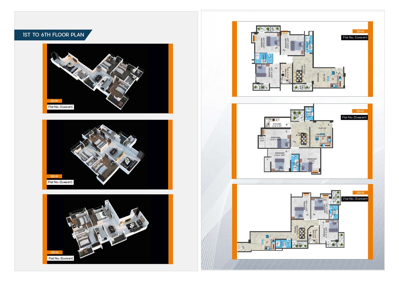 | 03 (First to Sixth Floor) | 3BHK + 2T | 1470 Sqft |