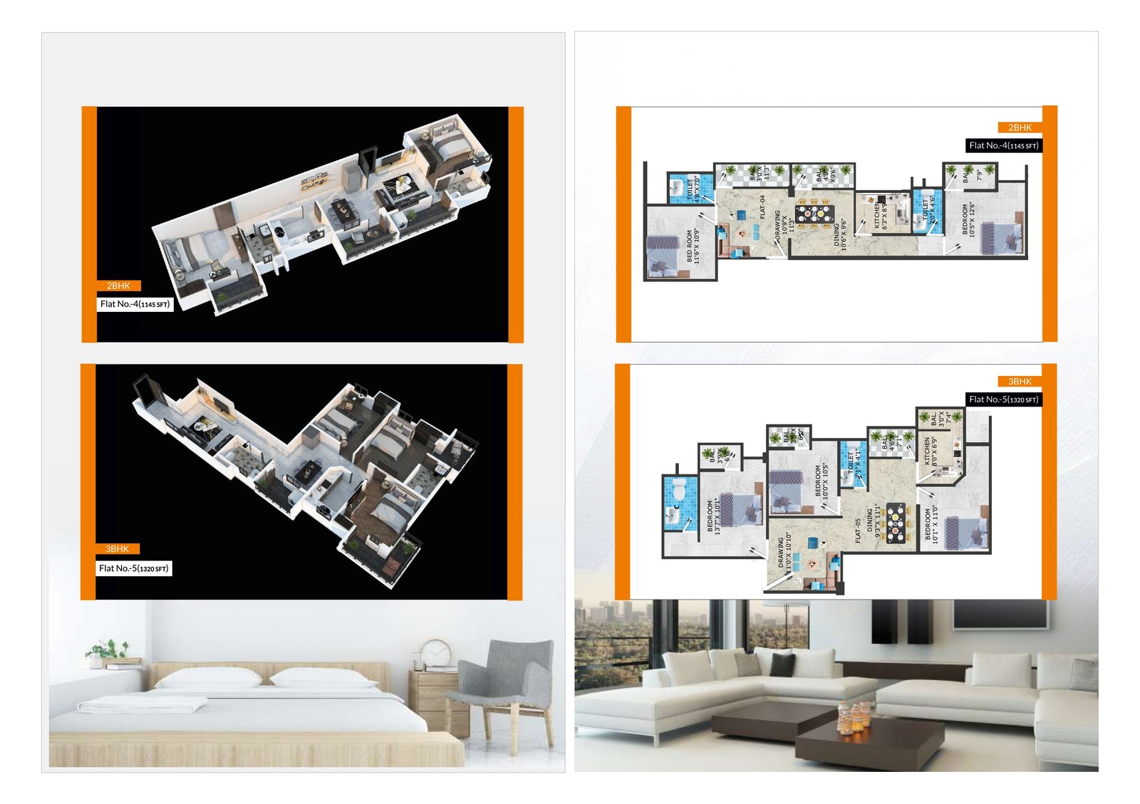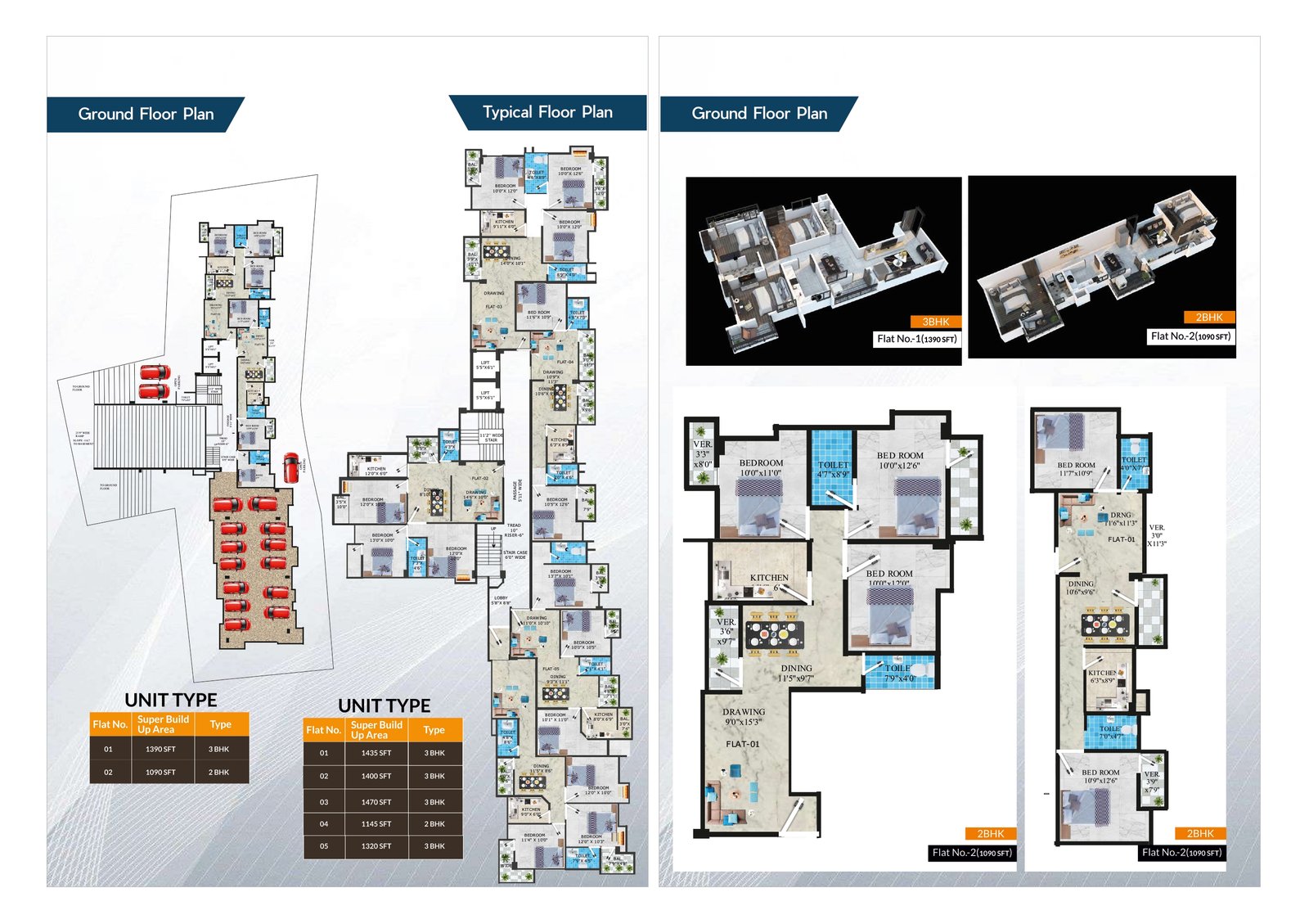 | 02 (Ground Floor) | 2BHK + 2T | 1090 Sqft |